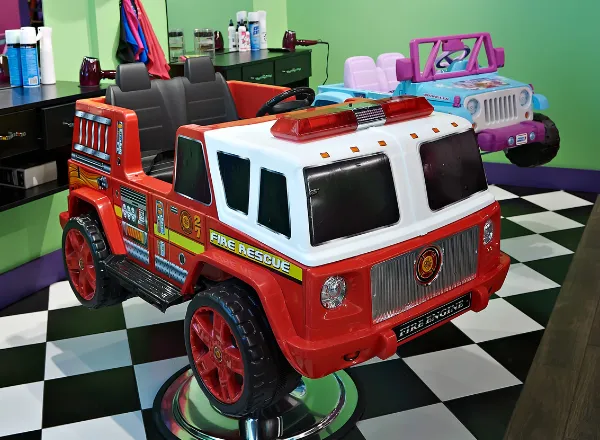 At Sharkey’s Cuts for Kids, we know that kids and parents want something different from their haircut experience. That’s why we provide it all: a superior haircut with warm, experienced stylists in a meticulously clean, fun-filled environment! Children can sit in a Dodge Police Cruiser, Barbie Jeep, Lightning McQueen Race Car, or Mini Cooper—while watching their favorite cartoons or Netflix!